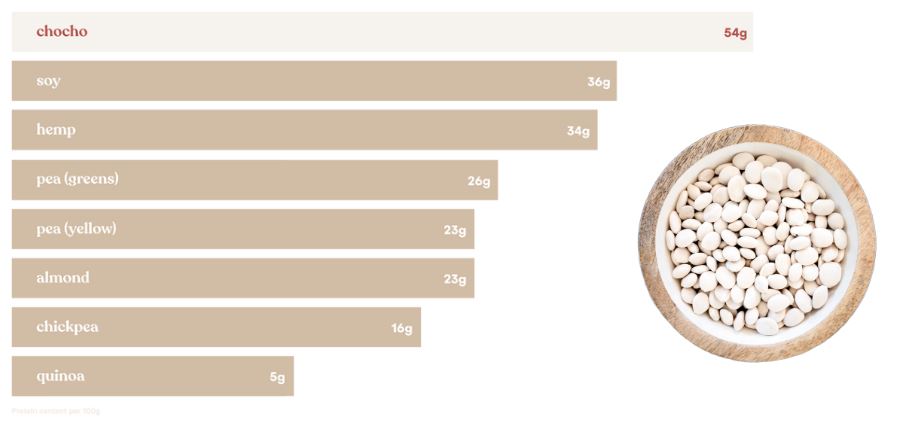 Chocho naturally contains the most protein of all traditional plant-based sources.